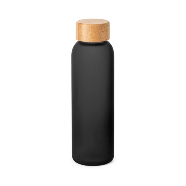 Gematteerde glazen fles met schroefdop, gemaakt van bamboe. Inhoud: 520 ml. Geleverd in een geschenkdoos van kraftpapier. Vanwege het natuurlijke materiaal kunnen de kleur van het product en het drukresultaat per product afwijken